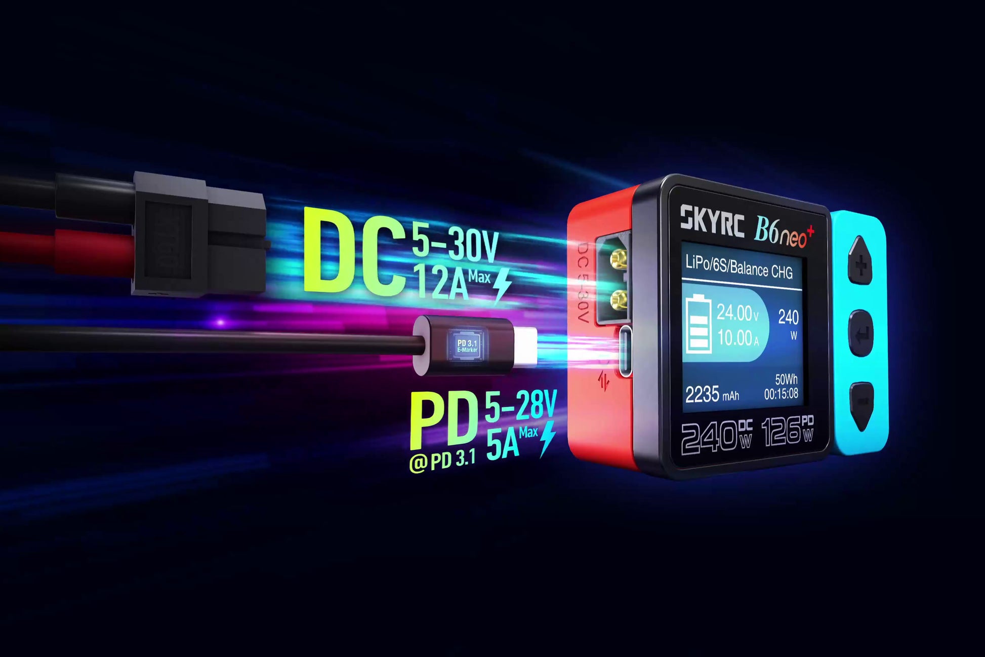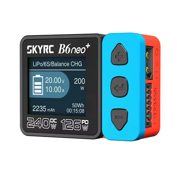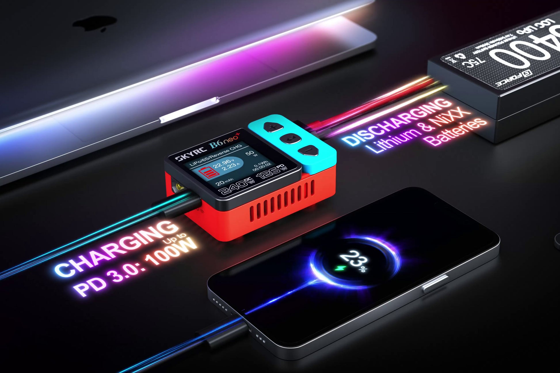 - LiPo / LiFe / LiIon / LiHV / NiMH / NiCd / Pb: 0,3–10 A